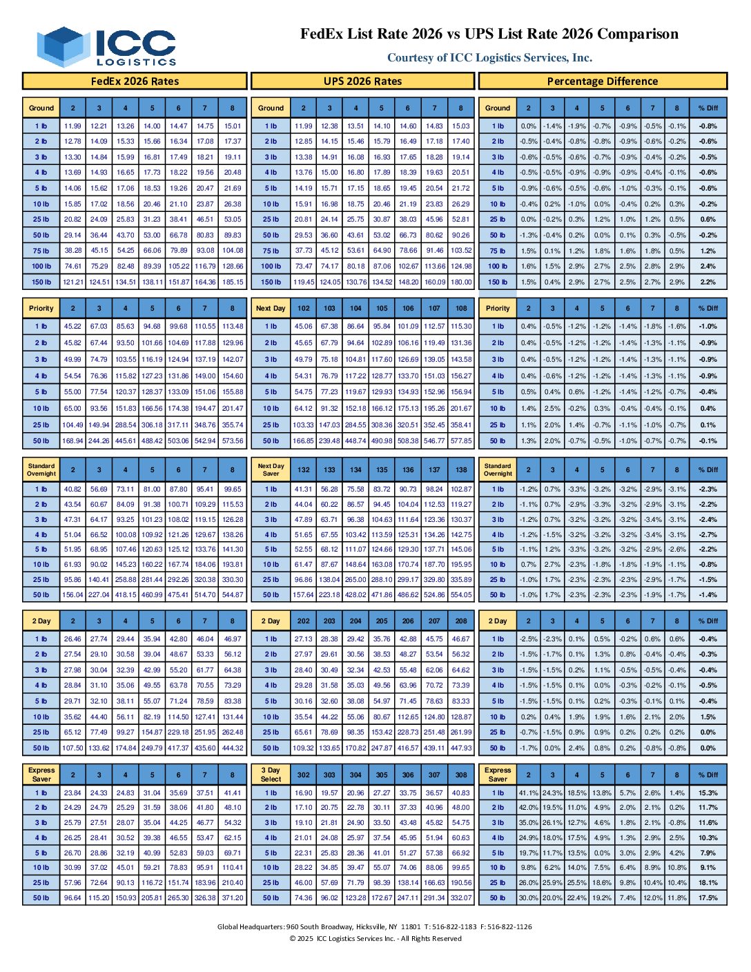 FedEx List Rates 2026 vs UPS List Rates 2026 Chart